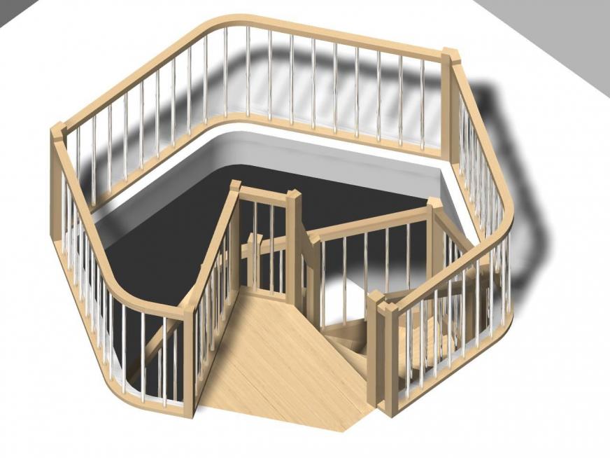 In Verbindung mit AICADstair ist das Brüstungsgeländer in verschiedenen Varianten einsetzbar. Es besteht die Möglichkeit, das Brüstungsgeländer mit einer Treppensituation zu kombinieren oder als separates Geländer zu nutzen.