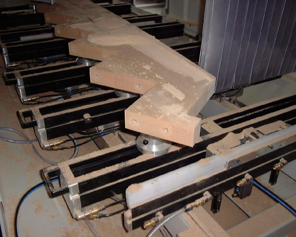 Sattelwangen werden in AICADstair als Einzelbauteile abgearbeitet. Gehrungen werden gesägt oder gefräst (verschiedene Abarbeitungen sind mit Sonderwerkzeugen möglich). Verbindungselemente wie Dübel und Schrauben sowie Querbretter werden ebenfalls berücksichtigt.