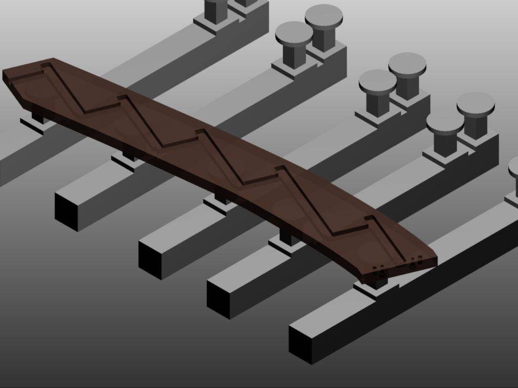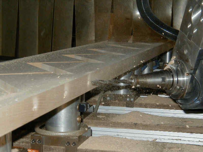 Wangen bzw. Untergurte werden in AICADstair als Einzelbauteile abgearbeitet. Stufen mit Setzstufen können einzeln oder als Einheit komplett (wie eine einzige Aussparung) bearbeitet werden - dies verhindert das Abplatzen an Ecken. Seitlich an Wangen bzw. Wangenpfosten werden die Stufen und die Setzstufen ebenfalls gefräst. Gehrungen werden gesägt oder gefräst. Staketen, egal ob rund, rechteckig, rautenförmig, etc. werden entweder gebohrt oder gefräst.
