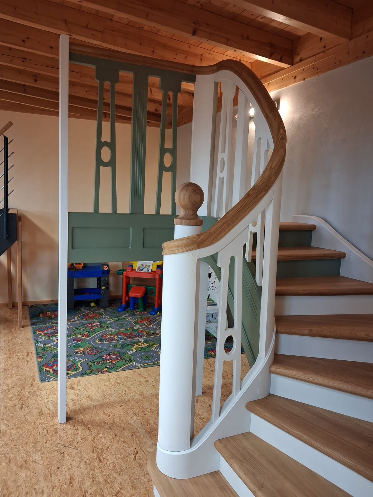 AICADstair bietet die Möglichkeit, Krümmlinge (stehend, liegend) im Grundriß zu konstruieren, seitlich abzuwickeln und 3D darzustellen. Als zusätzliche Abwicklungen können Verstreckungsschablonen, Mehrschichtschablonen (z.B. große Radien) ausgegeben werden. Handlaufüberhöhung mit verschiedenen Profilen sind optional erhältlich. Alle Daten können als Schablonen 1:1 gedruckt werden oder direkt an CNC-Maschinen übergeben werden. Bei Handlauftragenden Treppen und Stattelwangen können ebenfalls Krümmlinge konstruiert und abgearbeitet werden.