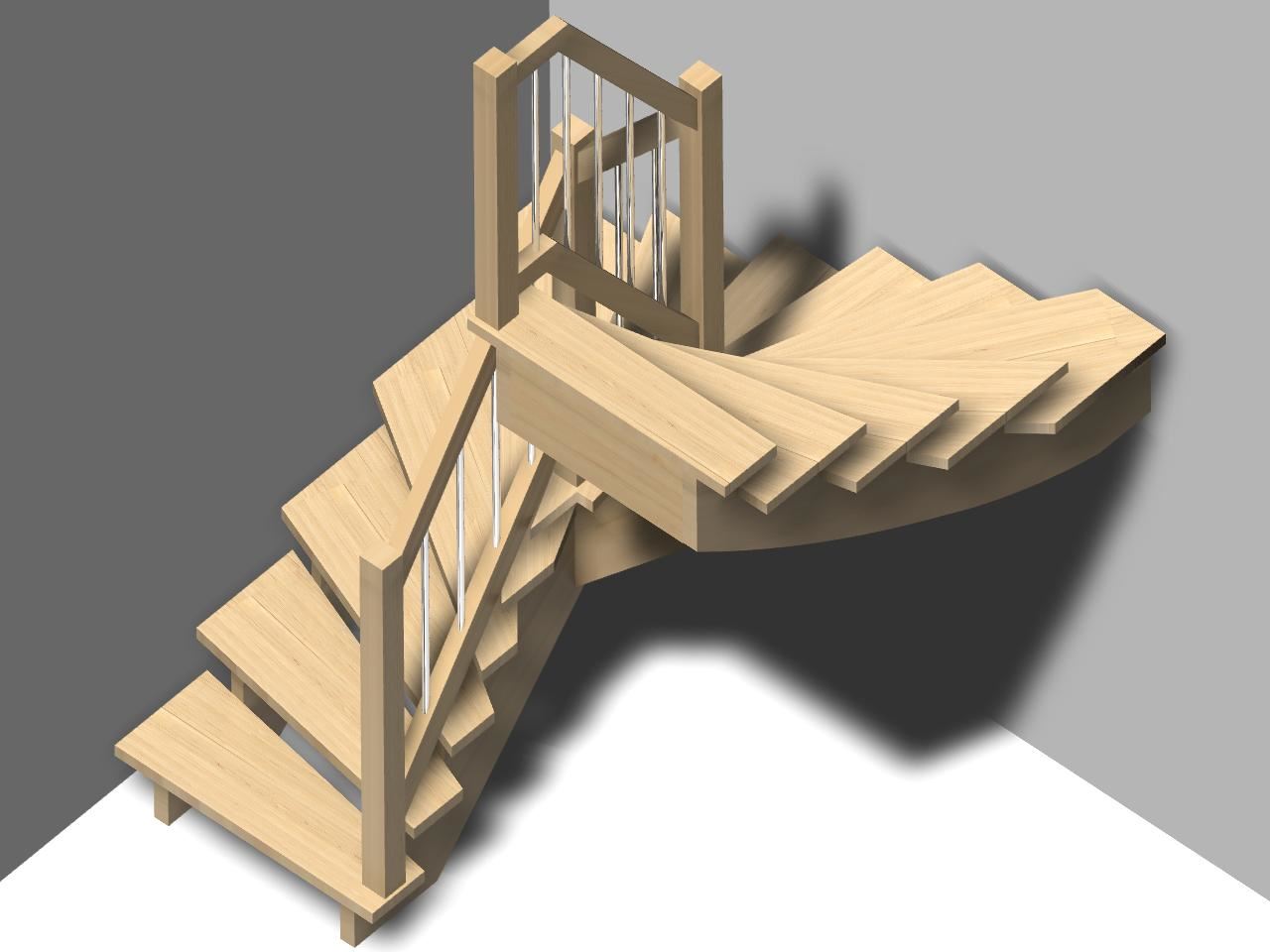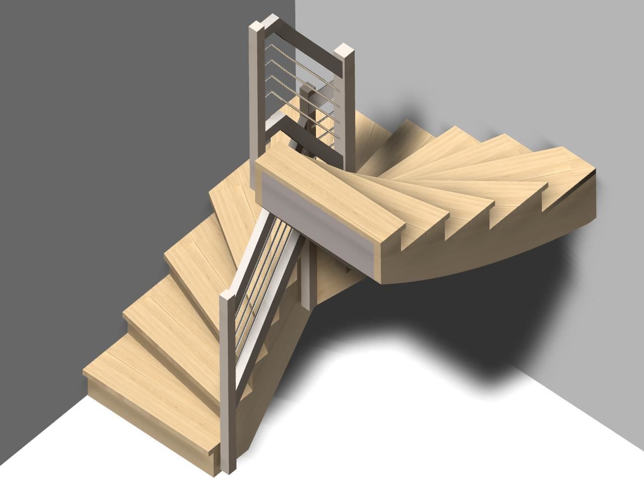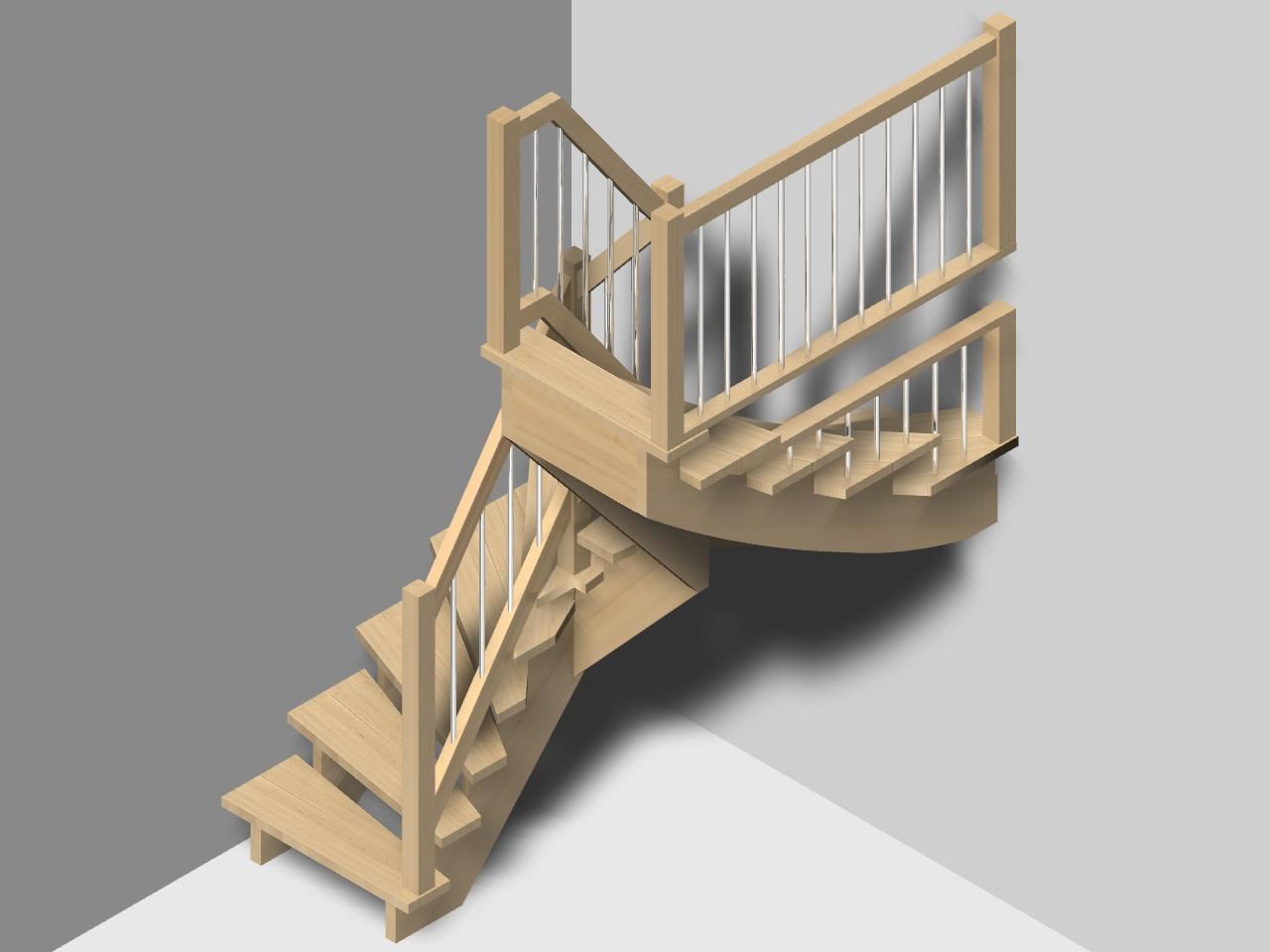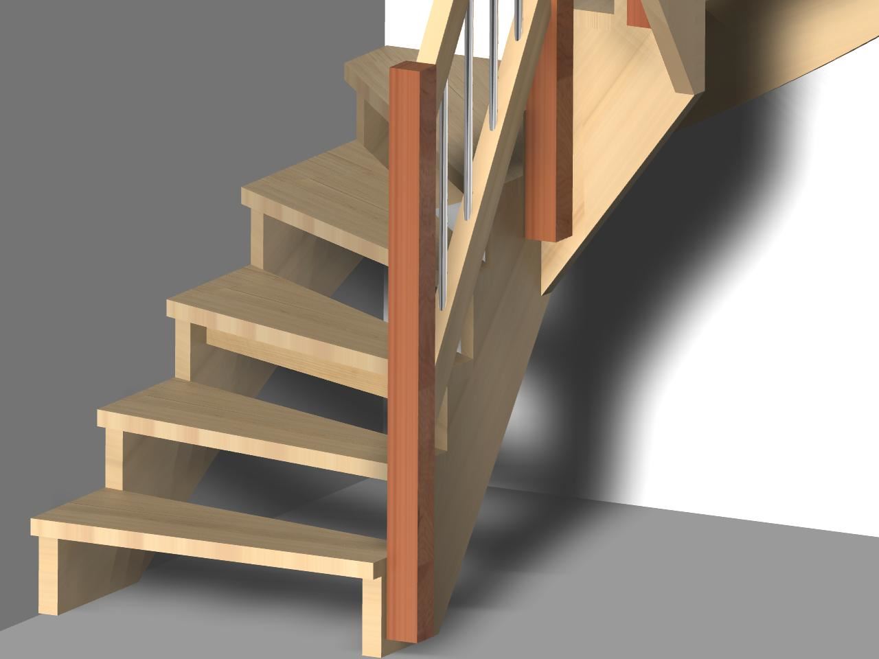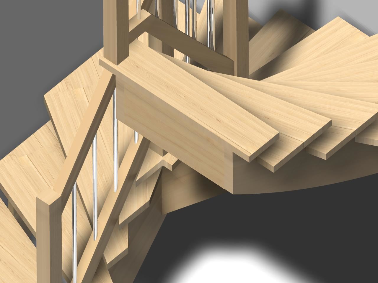 Die Sattelwangentreppe ist neben der Wangentreppe die klassische Treppe des Treppenbaus. Als Bestandteil von AICADstair wood wird sie oft mit Geländerkombinationen als gestalterische Treppe gebaut. Das Geländer wird meist mit Untergurt ausgebildet, kann aber auch direkt in den Stufen verankert werden.