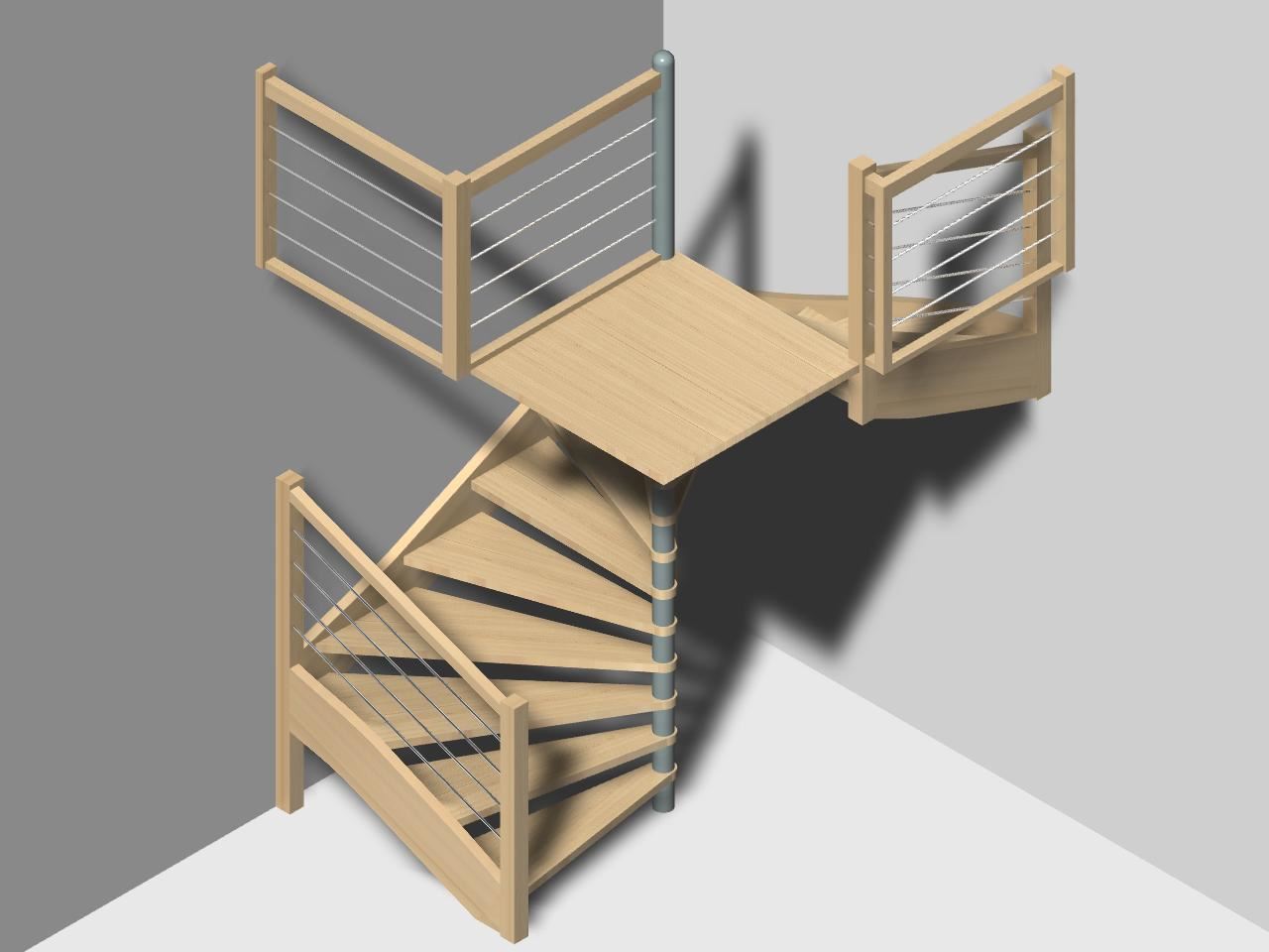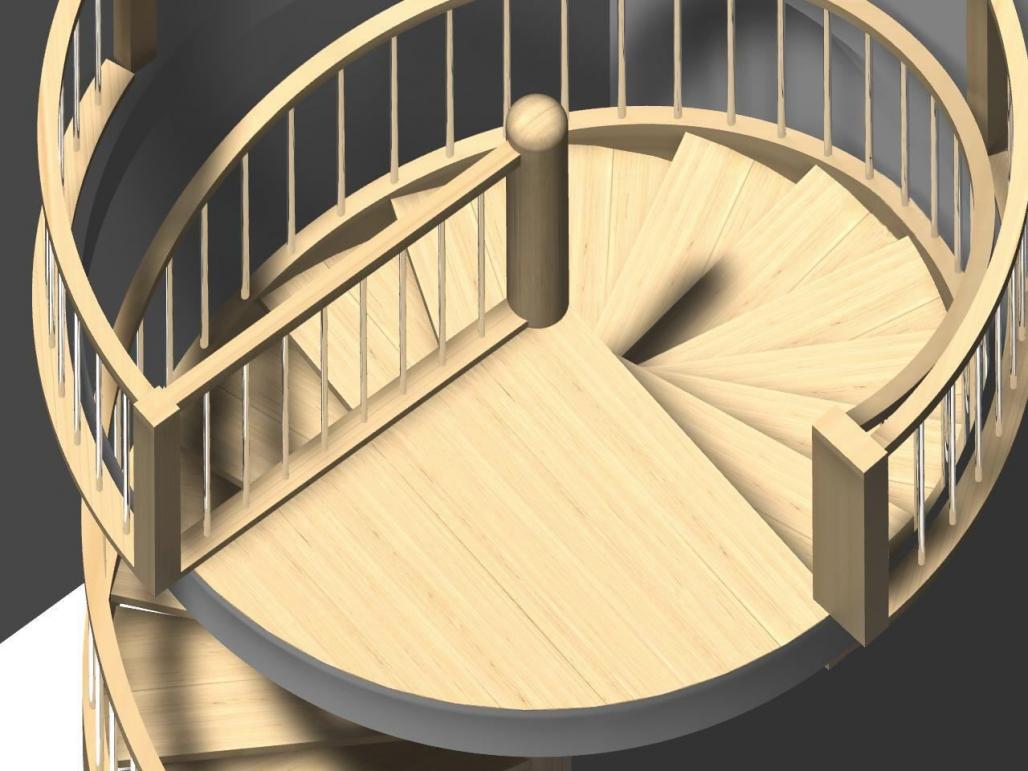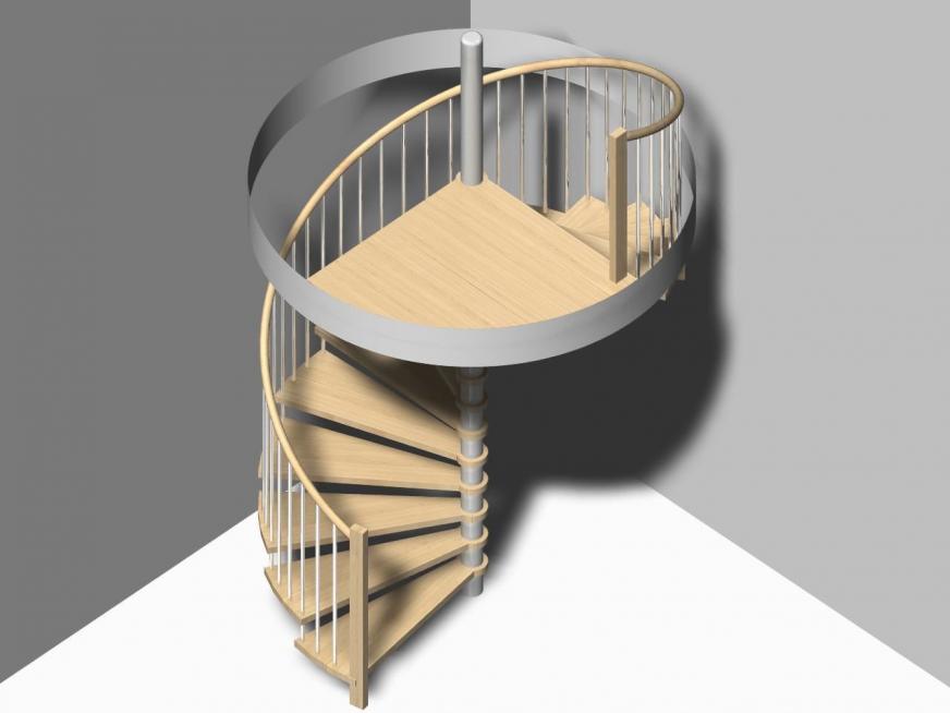 In Verbindung mit AICADstair ist als Option die Spindeltreppe für den Holztreppenbau verfügbar. Eine Kombination verschiedener Unterkonstruktionen ist wie bei den Standardtreppen möglich. Weiterhin sind alle Bearbeitungstools wie z.B. Wangenverlängerung oder Stufenkorrektur einsetzbar. Zur Präsentation werden alle Treppenbauteile in 2D/3D-Darstellung erzeugt.