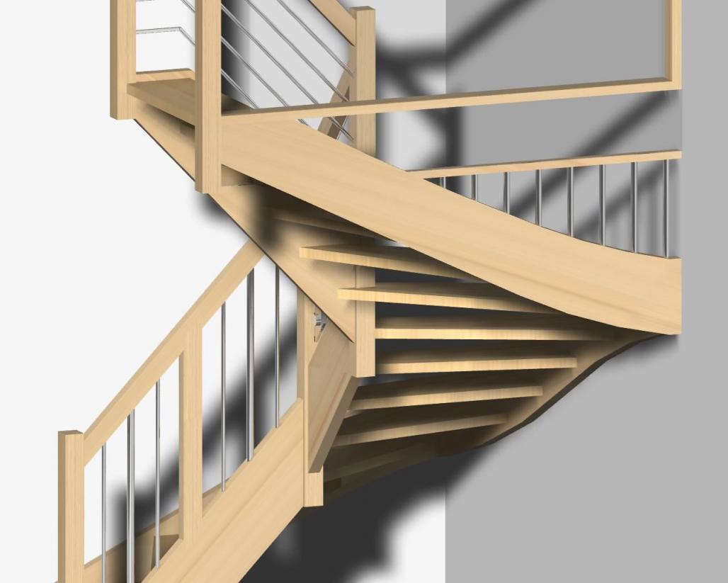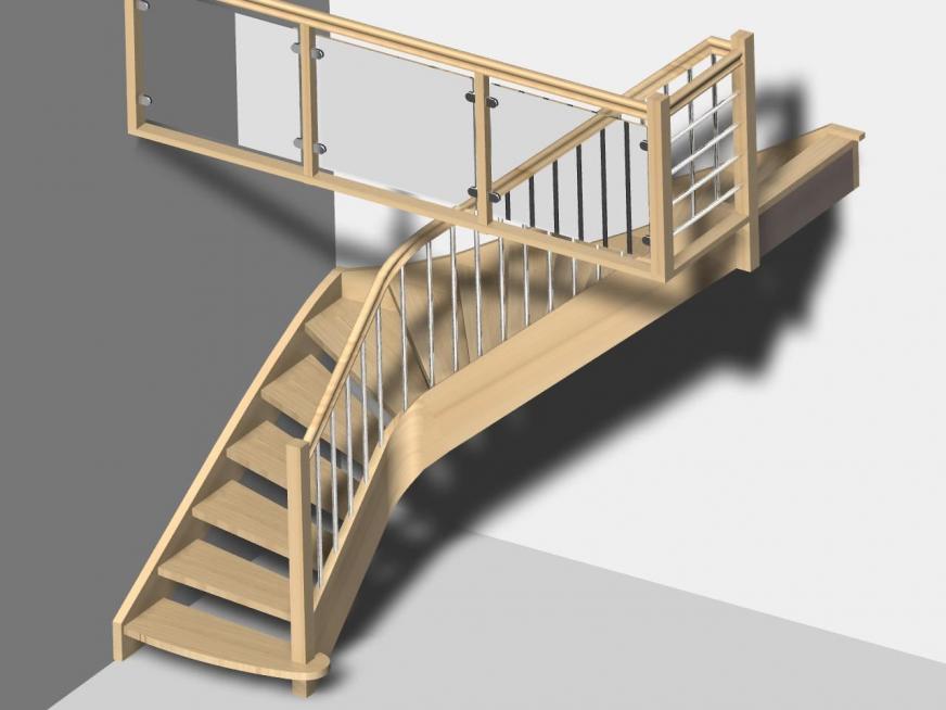 Festlegung der Wangen im Grundriß, Abwicklung von geschwungenen Holzwangen, Verschiebung der An- und Austrittspfosten, unterschiedliche Wangenstärken je Lauf, Wangenabschluß über die Voreinstellungen editierbar, Einteilung der Stäbe, Stabachsen, Krümmlingsabwicklung.