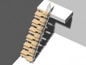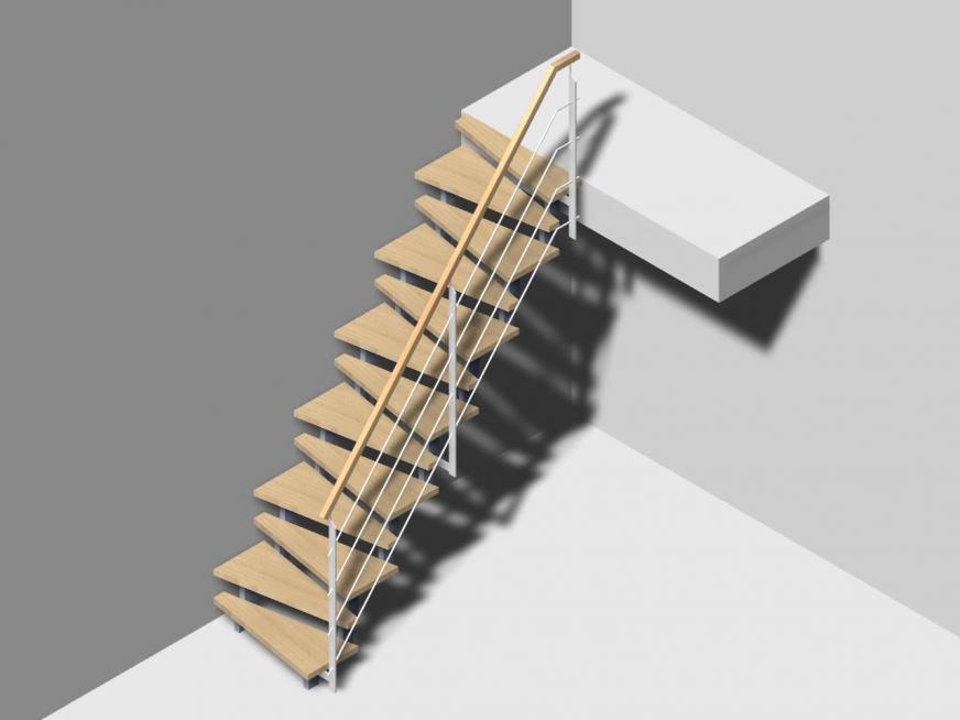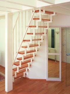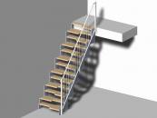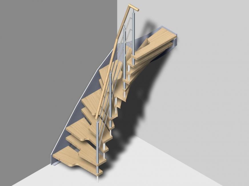 Bei sehr geringem Platz findet diese Treppe ihren Einsatz. Die Abarbeitung erfolgt in der gleichen Form wie bei den Standardtreppen. Nach Festlegung der Treppe im Grundriß können die Stufen bei Bedarf frei verzogen werden. Die Wangenteile werden im Grundriß und in der seitlichen Wangenabwicklung dargestellt und können bei Bedarf noch nachträglich verändert werden. Alle relevanten Treppendaten wie Stufen, Wangen und Geländer können als Schablonen 1:1 oder direkt an eine NC-Maschine zur Fertigung übergeben werden.