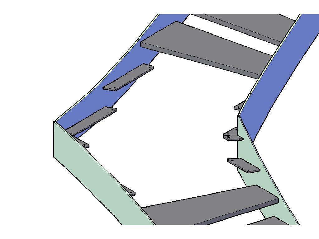 Podestunterkonstruktionen können frei in der Lage und in der Höhe mit Tragbrettern (Holmen) definiert werden. Ein Tragbrett kann zwischen Wange, Sattelwange oder mit sich selbst verschnitten und verdübelt werden. Die Unterkonstruktion wird im Grundriß definiert. Durch Eingabe wird festgelegt, wo und auf welchem Niveau ein Tragbrett liegen soll (z.B. Unterkante der Stufen).