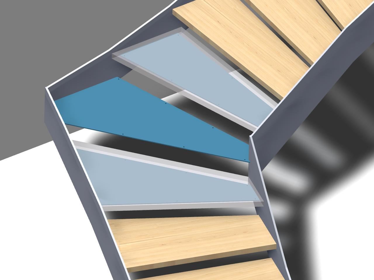 Querholme, seitliche Tragbleche, Blechstufen als Unterkonstruktion sind alles Konstruktionen, die das Tragverhalten der Treppen beeinflussen und stabilisieren.