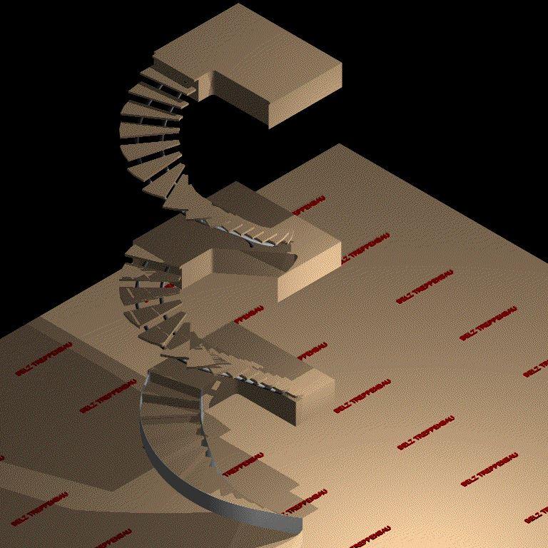 Die 3D-Darstellungen der Treppen entsprechen den Konstruktionsdaten und ermöglichen es dem Treppenbauer, die realistische Treppensituation seinen Kunden zu präsentieren.